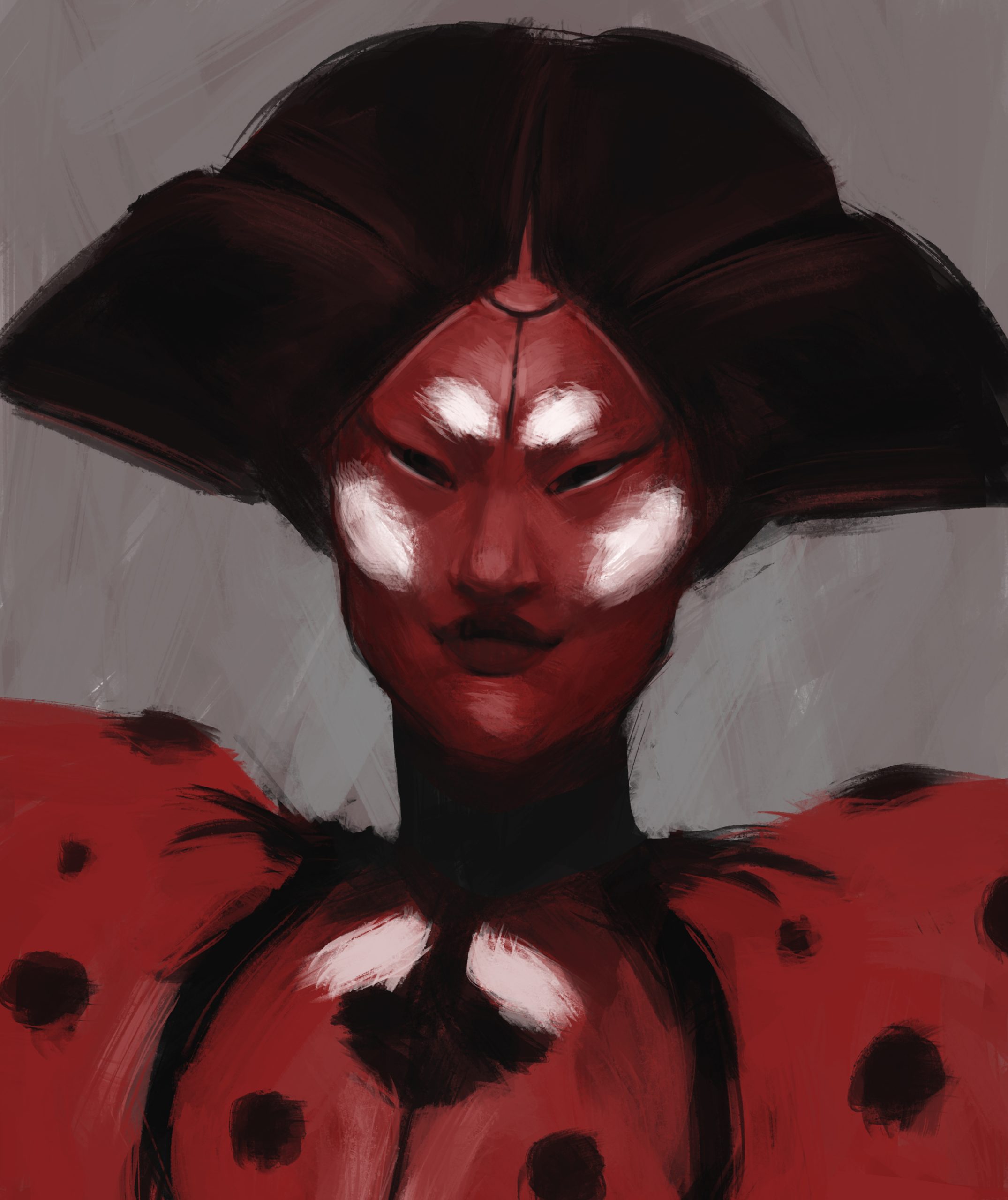 Lady Bug inspired by the traditional Geisha hairstyle and makeup.